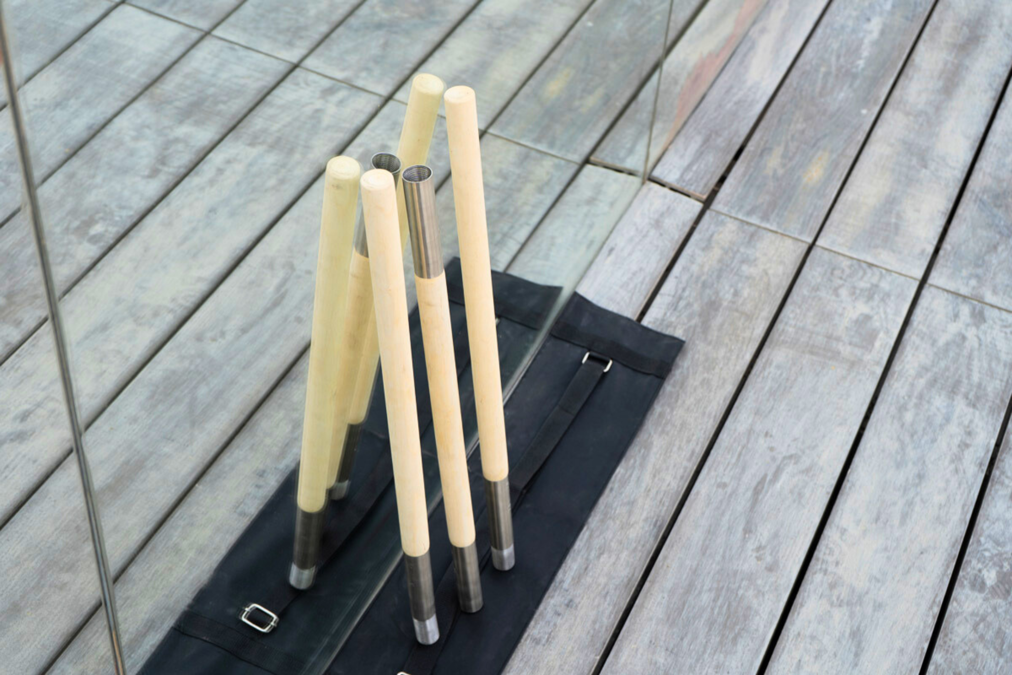The staff comes in three solid wood sections that connect using secure metal locking connectors. They twist and lock firmly into place, creating a stable full-length training staff.